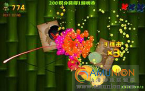 3. 一刀砍三个以上水果(包括三个),可获得更多的积分。