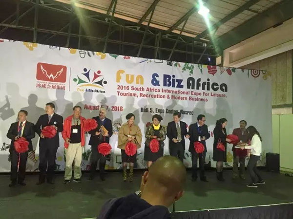 南非展开幕仪式在广东鸿威集团王照云董事长及项目经理郑紫甜的主持下隆重举行,台下座无虚席,热闹非凡,引来众多中非媒体以及观众们的热烈欢呼,现场掌声雷鸣,闪光灯咔嚓不停,可见本届展会受到中非高度的关注。