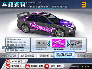 对战赛道由所有对战玩家选择后投票决定,可选择全场景以及正走或逆走。和时间竞速不同的是,从一开始的车辆额外点数分配,到比赛中后车加速设定的运用、碰撞以及放N2O的时机等等,玩家都必须考虑并且计划。如果以为自己的车等级比较高就稳操胜券,可是会阴沟翻船的。